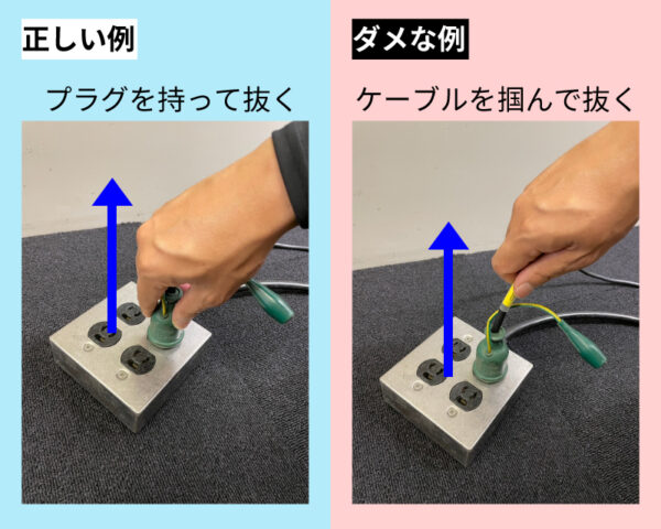 火災の原因になるため、プラグの抜き差しにご注意ください