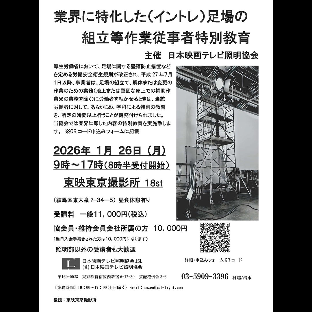 業界に特化した(イントレ)足場の組立等作業従事者特別教育実施のお知らせ
