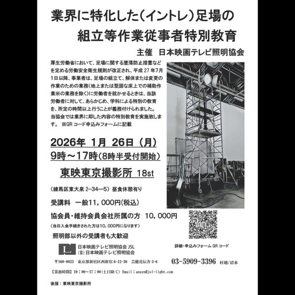 (イントレ)足場の組立等作業従事者特別教育が、東映東京撮影所様にて開催されます。