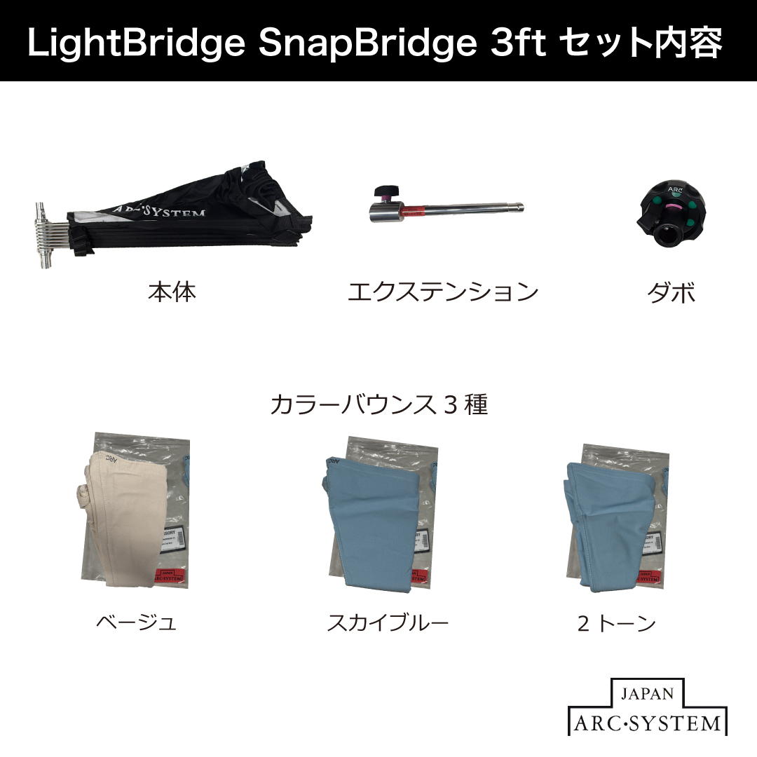 LIGHT BRIDGE SNAPBRIDGE 3ft/5ftのご紹介 2026.01.22 3ftもしくは5ftのアンブレラにLIGHT BRIDGEのリフレクターを装着し、光の漏れをホワイト、スカイブルー、ベージュ、ツートンカラー(スカイブルー/ベージュ)などへ反射しナチュラルなライティングができます。 ※写真は3ftの物です。5ftはサイズが異なりますがセット内容は同一となります。 この記事を共有する > NEWS 記事一覧へ