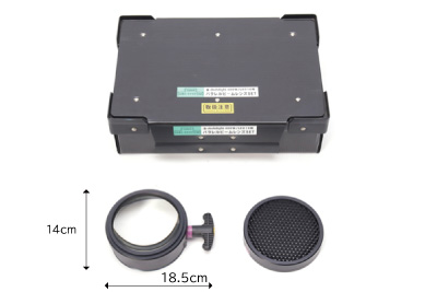 ▼写真はHMI400W/LED10兼用のパラレルビームレンズセットです。